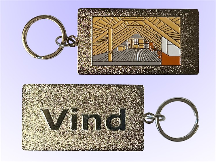 Nyckelbricka i metall, handemaljerad med en 18 mm nyckelring. Motiv på framsidan och enbart text på baksidan. Köps styckvis.